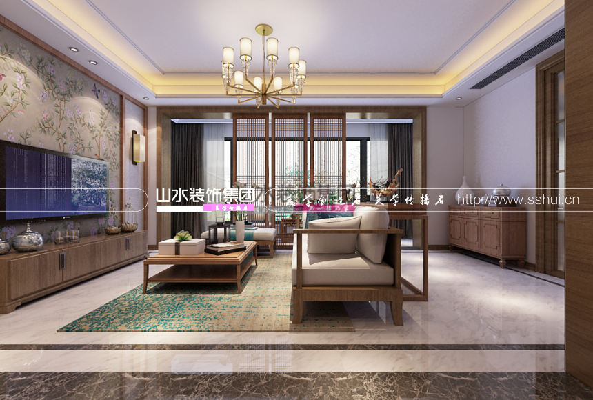该户是新中式装饰风格,在室内设计中,一贯追求照搬古代设计往往效果不尽如人意,更要注重加入现代元素。另外在设计中也可以把主人的个人喜好、品味等也加入进去,采用硬朗简洁的直线条,空间具有层次感。既使得中式家具古典、质朴的内涵显现,又符合现代人追求的时尚感、实用性。