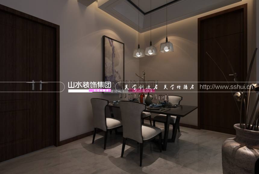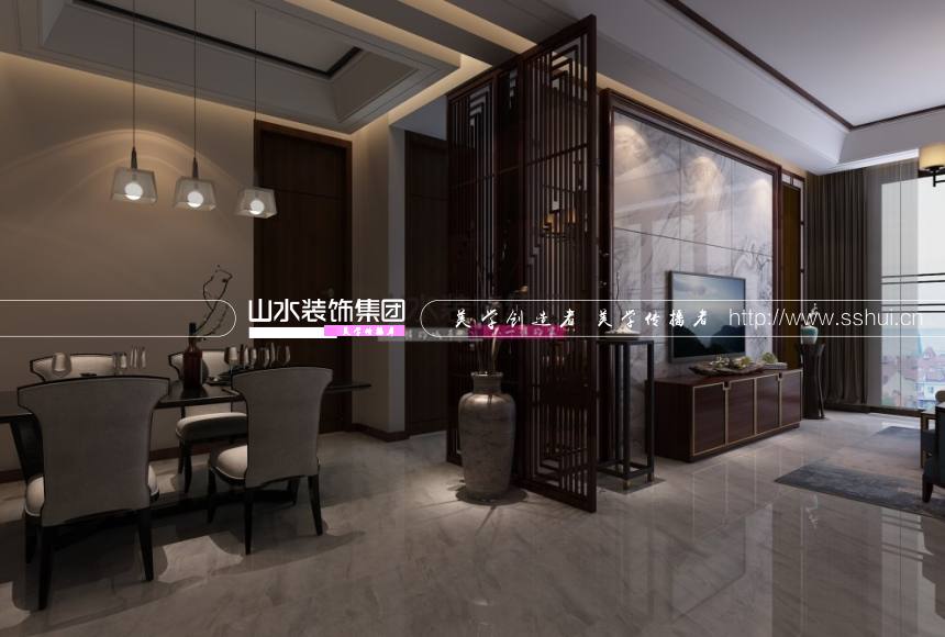 新中式风格讲究纲常,讲究对称,以阴阳平衡概念调和室内生态。选用天然的装饰材料,运用“金、木、水、火、土”五种元素的组合规律来营造禅宗式的理性和宁静环境。